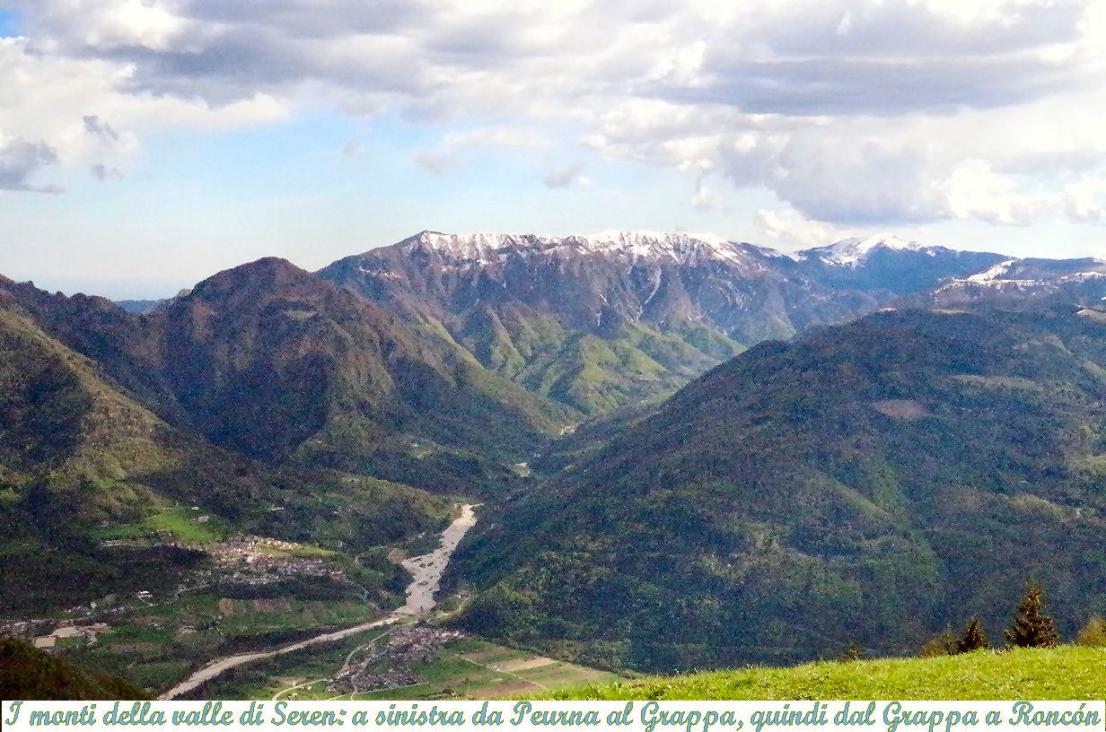 destro la catena Grappa-Fontanasecca-Sassumà ha rilievi che superano i 1600 metri fino al M.