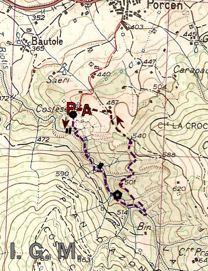 in cui scende nel torrente: il sentiero detto "tròi dele Coste" o "tròi dele Bòe",