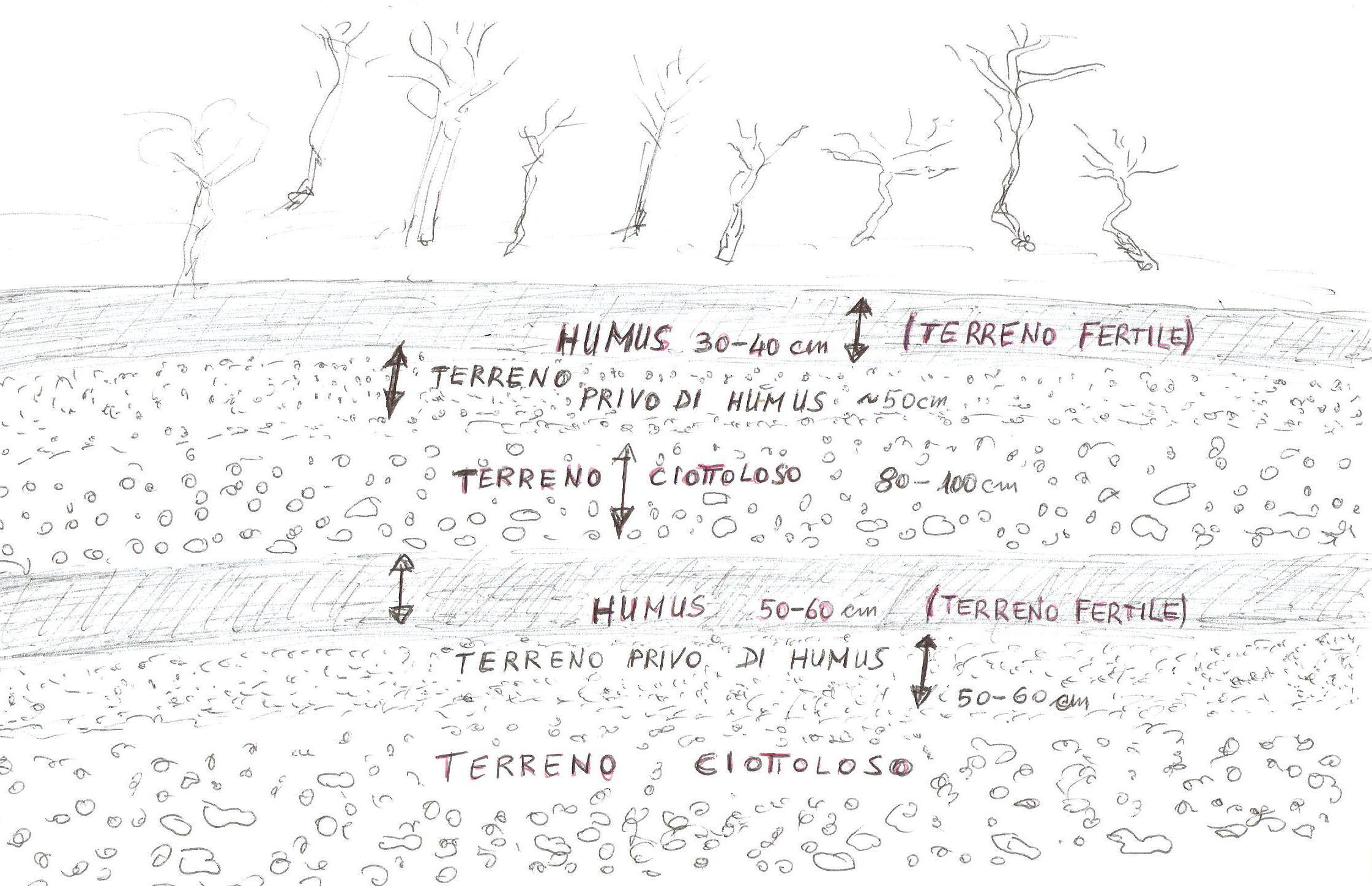 La leggenda narra che anticamente il paese avesse il nome di Rosai, omaggio ai meravigliosi giardini che lo ornavano, e che tale nome sia stato cambiato a causa di un'alluvione che rasò i giardini seminando distruzione. Non ho informazioni precise relative al cambio di nome del paese, ma certamente Rasai (la cui parte più bassa è situata in una lieve depressione) ha subìto distruzioni rovinose a causa di alluvioni, provocate in buona parte dal Biotìs  (e anche dallo Stizzòn naturalmente: ne sono prova vecchi argini verso la località Campagna). Una prova di questi eventi l'ho riscontrata a inizio anni '80, quando fu costruita la stalla ben visibile nella foto sopra il punto (3), sulla riva destra del Biotìs. La spianata del terreno, in leggera pendenza, che sarebbe stato occupato dai capannoni, comportò la formazione di una scarpata, a monte (Sud), alta poco meno di tre metri. In tale scarpata gli strati del terreno parlavano chiaro: un primo strato di terra fertile, spesso un po' meno di mezzo metro, poggiava su del materiale sabbioso la cui granulometria si faceva più consistente andando a maggiori profondità, fino a trovare uno strato di ciottoli e pietre anche di un certo volume. Questi tre strati poggiavano su identica successione: sotto le pietre e i ciottoli, a circa un metro e mezzo di profondità, era evidentissimo e perfettamente conservato uno strato di terreno fertile, di spessore addirittura superiore a quello di superficie. Prova inconfutabile di un disastro che aveva portato ben più di un metro di materiale sulle zone a destra del Biotìs; anche a sinistra, dalla parte di Rasai, il torrente era sicuramente esondato, essendo quell'argine allo stesso livello, o addirittura leggermente più basso, della riva destra.