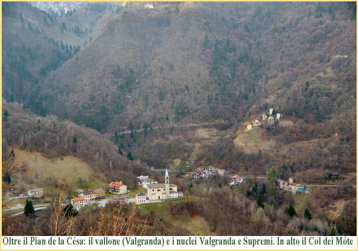 Lungo la comunale che sale al Pian de la Césa dal ponte al Boarnàl, proseguendo oltre l'incrocio con la strada che a destra sale a Pradazèrn, incontriamo tre nuclei di abitazioni; a monte i Facchinàt; un po' oltre i Suprèmi, con le case ai lati della strada che lasciano uno spazio minimo in un'ansa della via; infine il nucleo Val Granda, stesso nome del torrentello che, nel vallone che raccoglie le acque dei bacini Reselé e Val Onèra, costringe ad un'ampia ansa prima del tratto che porta al Pian. Anche in corrispondenza di Val Granda le abitazioni ai lati stringono la strada per qualche decina di metri.